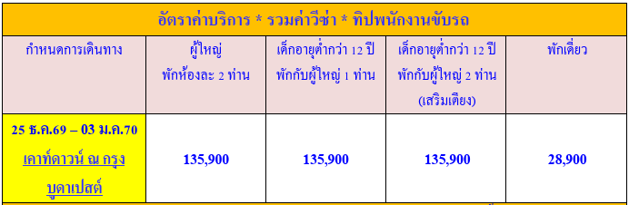 กำหนดวันเดินทาง : 25 ธันวาคม 2569 - 3 มกราคม 2570