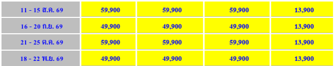 กำหนดวันเดินทาง : พฤษภาคม - พฤศจิกายน 2569