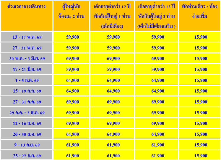 กำหนดวันเดินทาง :  พฤษภาคม - มกราคม 2570