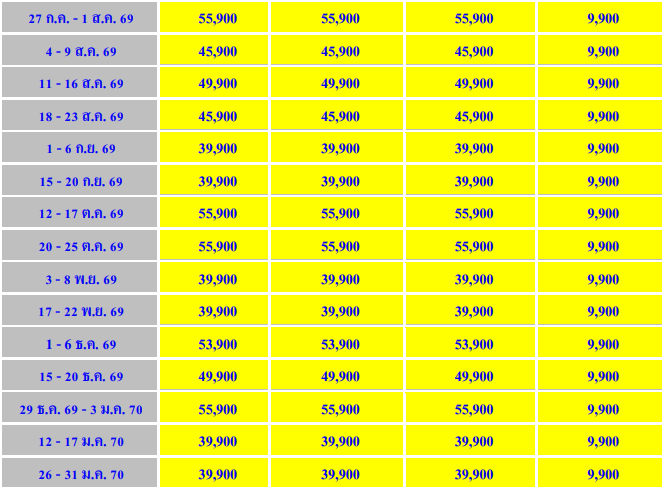กำหนดวันเดินทาง : พฤษภาคม 2569 - มกราคม 2570 (เทศกาลปีใหม่)