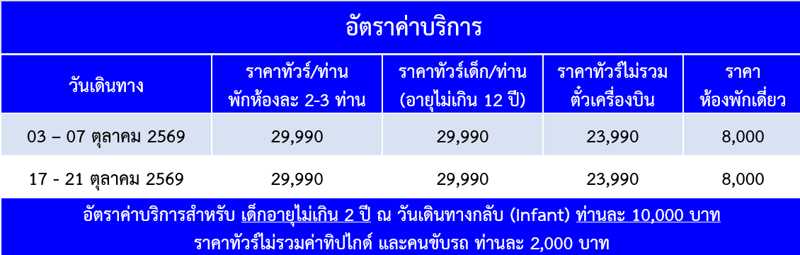 กำหนดวันเดินทาง : ตุลาคม 2569