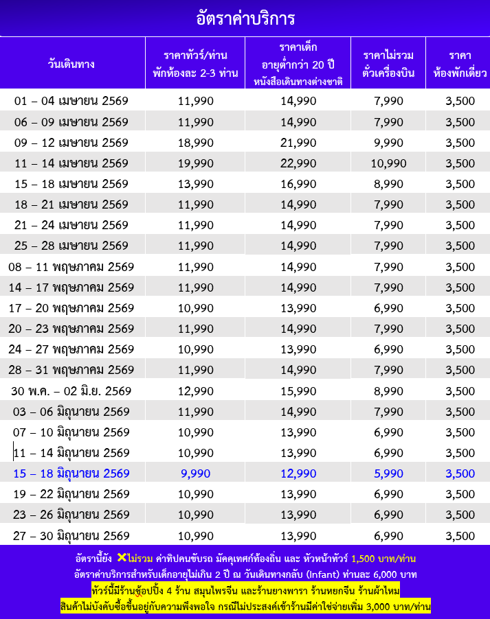กำหนดวันเดินทาง : เมษายน - มิถุนายน 2569