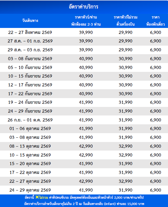 กำหนดวันเดินทาง : สิงหาคม - ตุลาคม 2569