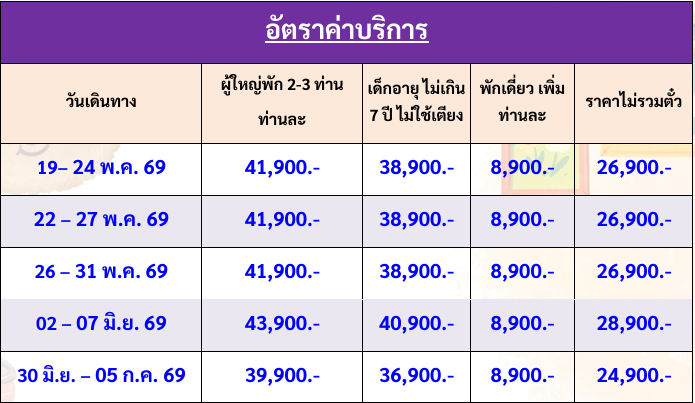 กำหนดวันเดินทาง : พฤษภาคม - มิถุนายน 2569