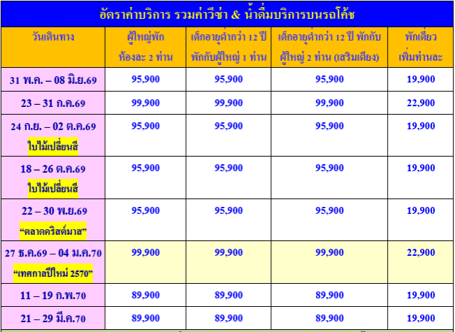 กำหนดวันเดินทาง : พฤษภาคม 2569 - มีนาคม 2570 (เทศกาลปีใหม่)