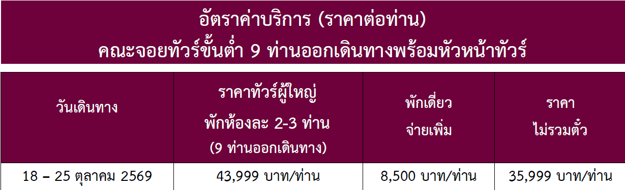 กำหนดวันเดินทาง : 18 – 25 ตุลาคม 2569