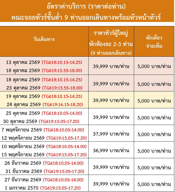 กำหนดวันเดินทาง : ตุลาคม - ธันวาคม 2569 (ขึ้นปีใหม่)