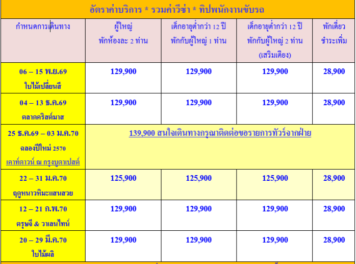 กำหนดวันเดินทาง : พฤสจิกายน 2569 - มีนาคม 2570 (เทศกาลปีใหม่)