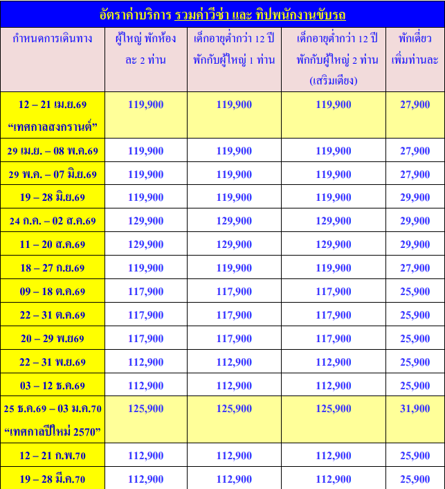กำหนดวันเดินทาง : เมษายน 2569 - มีนาคม 2570 (เทศกาลปีใหม่)