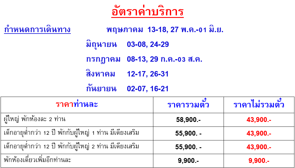 กำหนดวันเดินทาง : พฤษภาคม - กันยายน 2569