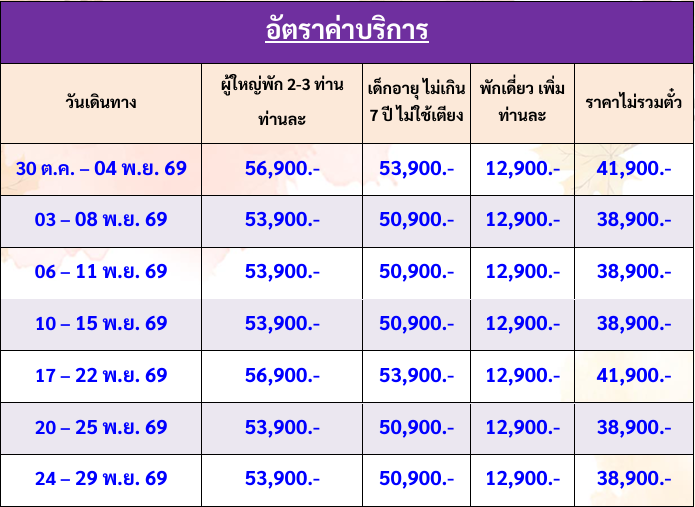 กำหนดวันเดินทาง : ตุลาคม - พฤศจิกายน 2569