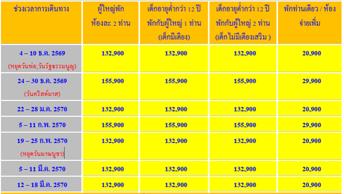 กำหนดวันเดินทาง : ธันวาคม 2569 - มีนาคม 2570 (เทศกาลปีใหม่)