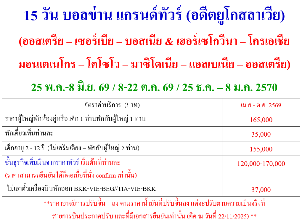 อัตราค่าบริการ  15 วัน บอลข่าน แกรนด์ทัวร์ -OS (โครเอเชีย บอสเนีย มาซิโดเนีย แอลเบเนีย คอซอวอ เซอร์เบีย มอนเตเนโกร)